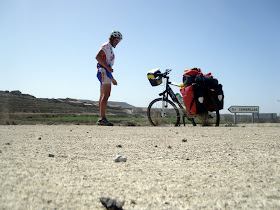 Habíamos quedado con Saioa a las 21h. 40m. en la estación de autobuses de Huesca para partir a Osan. Después de cenar un poquillo vamos con Teresa a tomar un café tranquilamente y a esperar. El autobús se retrasa, pues es el último que llega a Huesca y para en todos lo pueblos que tiene que dejar y recoger a viajeros. A las 22h. 5m. llega a Huesca. Saludos de rigor, y sin más comenzamos a andar acompañando a Teresa hasta el Hotel ABBA. Los primeros comentarios son que los “hombres del tiempo” han dicho que haría buena noche. Despedida, y comenzamos a trotar por las calles de Huesca camino de Osan. Salimos por la Plaza de Santa Clara, Avda. de los Danzantes, llegamos al refugio de peregrinos de San Galindo (inaugurado hace pocos años, para conseguir la llave hay que llamar al teléfono indicado en la puerta), calle de Ramón y Cajal, calle de la División Azul, un par de rotondas en la zona industrial, y a poner los frontales. Es de noche y no se ve nada. Un coche está parado en el arcén de la primera rotonda, y cuando pasamos se va, llegamos a la segunda rotonda, y allí ha parado. Comentario: debe de ser la policía secreta, habrá pensado, adonde irán estos “chalados con sus locos cacharros”.