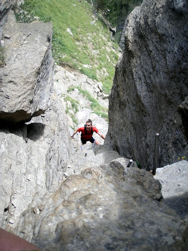 De aquí tomamos la tercera faja tras cruzar el puentecito metálico que hay al pie de la cascada y que nos mete en el sendero de la faja la de Pelay o Senda de los cazadores que aunque muy larga no hay tantos desniveles como anteriormente. Atención esta faja en invierno, suele ser también muy peligrosa. Así proseguimos un buen rato corriendo entre paredes, desfiladeros impresionantes, donde el valle se va quedando muy por debajo de nosotros aunque podemos apreciar sin ninguna dificultad toda la subida normal del valle, donde cientos de excursionistas recorren todos los días ese camino del parque hasta cola caballo. Así para llegaremos al gran mirador que se encuentra a varios centenares de metros por encima de la pradera de Ordesa que se encuentra allá abajo. Magnifica vista de una buena parte del parque. Ya solo nos queda bajar. La bajada es brutal y infernal, pues aunque sus montones de zetas bajan muy bien trazadas, en estos momentos ya encontramos las plantas de los pies algo delicadas y al menor guijarro que aparezca bajo nuestra zapatilla nos hace ver las estrellas, aparte hay que retencionar mucho en esta bajada muestras piernas para no coger demasiada velocidad, pues una caída podría resultar muy peligrosa.