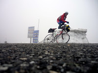 Empiezo cara abajo con algo de frio y sin pedalear, con la mala suerte que solo empezar me coge un Chaparrón tremendo, después de esto entre rayos y un mal pronóstico del tiempo decido seguir aunque no lo veo nada claro. Deja de llover y empiezo la subida al largo Puerto del Gordón (1924m), de aquí en pocos kilómetros más llego a La Cruz de Hierro (2061m). El tiempo va aguantando aunque la visibilidad se queda algo escasa. Empiezo ese gran descenso hasta San Jean de Maurienne a 545m. Como algo en el pueblo y llaneo por unos 10 km por una carretera con mucho tráfico hasta llegar al inicio del puerto en San Michel. Empiezo la ascensión del puerto con un buen ritmo y con rampas continuas del 8% hasta llegar en estos 12 primeros kilómetros al puerto y collado del Telegraphe (1566m). 1000m de desnivel que he subido rápido y a gusto. Un poco de bajada y llego hasta la estación de sky y pueblo de Valloire. De aquí me quedan 17 km para subir el” puerto del Galibier”(2646m), otro mítico puerto del Tour de Francia. Llego arriba y encuentro el último km de puerto cerrado por nieve. Hay un túnel alternativo sin iluminar, pero que narices cojo la bici al hombro y a subir como sea a este coloso de los Alpes hasta llegar al collado donde por el otro lado la carretera ya está sin nieve. A partir de aquí todo bajada hasta el pueblo intentando disfrutar del descenso pero ese frio espantoso al entrar en esa negra nube me hace pasar un rato malo en mis manos congeladas. Asi llego de bajada al collado de Laurent (2000m). Sigo bajando hasta llegar al pueblo de “La Grave “donde me espera el coche para protegerme y entrar en calor. Bonita etapa y dura con esos 176 km y 4040m de subida acumulada.