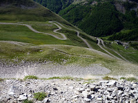 collado de la Magdalena (1996m) y el collado de Larche ya en el lado de Francia donde con otra fantástica bajada con el único problema del continuo trafico existente llegamos a Barcelonette. Etapa de 180 km con 4200m de subida acumulada y unas 10 h de pedaleo.